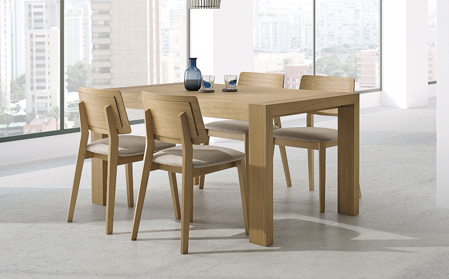 La silla VILMA presenta un diseño contemporáneo y funcional, ideal para espacios de uso frecuente como comedores, salas de reuniones o cafeterías. Fabricada en madera maciza, sus líneas rectas y el respaldo ligeramente inclinado permiten un apoyo ergonómico, mientras que el asiento cuenta con un tapizado suave, probablemente en tela o símil piel, lo que proporciona un extra de confort. La estructura es robusta, con patas rectangulares que aseguran estabilidad y durabilidad. El acabado natural de la madera refleja sencillez y elegancia, facilitando su integración en diferentes ambientes decorativos y su fácil limpieza.