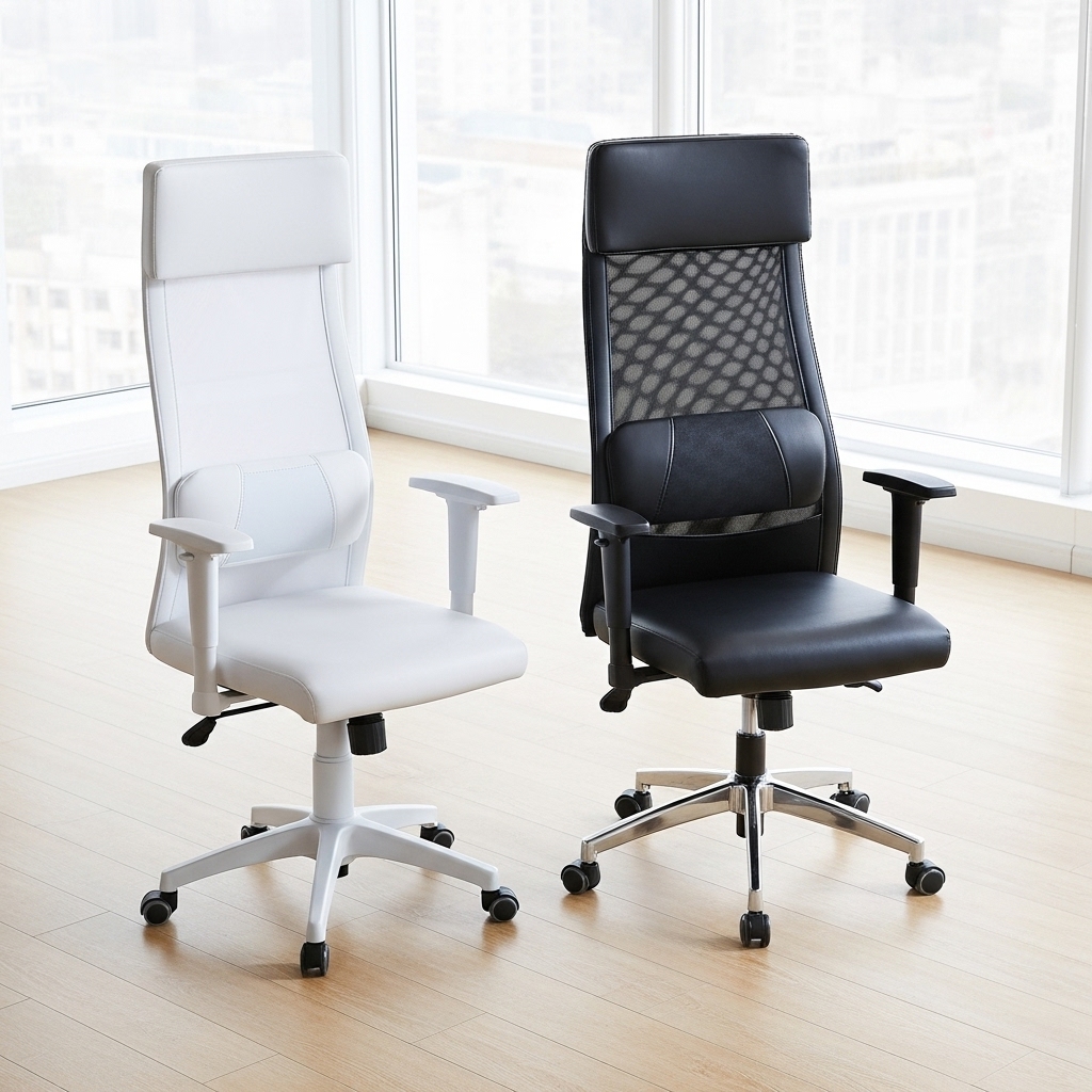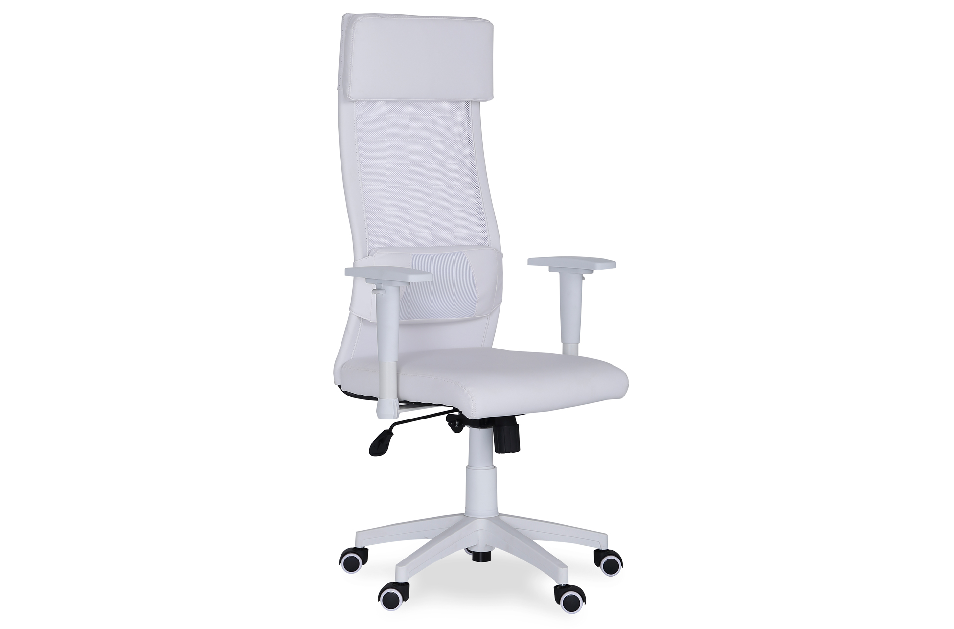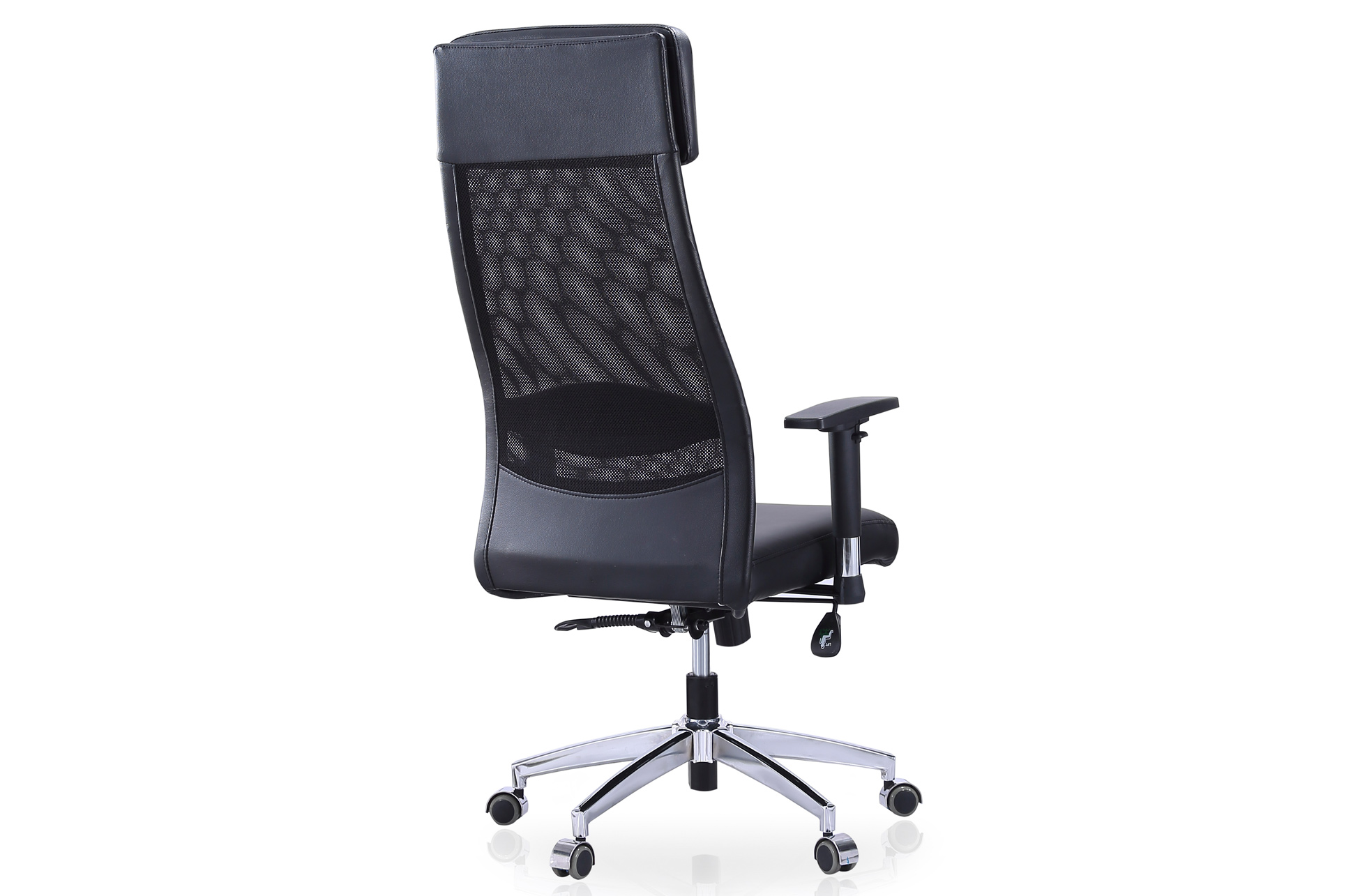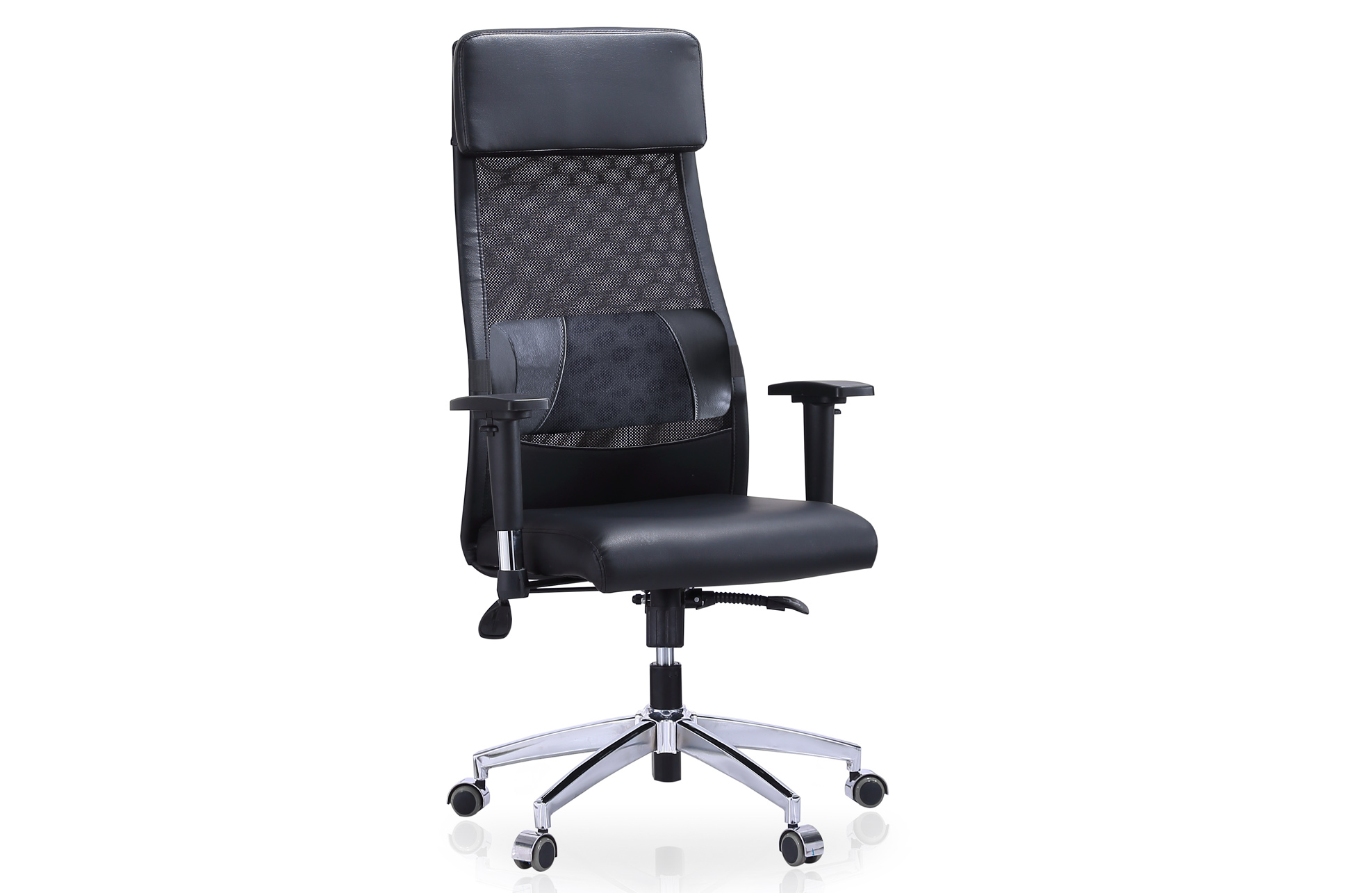 • Respaldo alto en malla 3D transpirable con estructura robusta. • Cojín lumbar ergonómico y regulable en altura para mayor soporte. • Asiento acolchado tapizado en símil piel para un confort suave. • Sistema de elevación a gas para regular la altura del asiento. • Mecanismo basculante con posibilidad de bloqueo de la inclinación. • Reposabrazos regulables que ayudan a relajar hombros y brazos. • Base giratoria de cinco radios con acabado metálico y gran estabilidad. • Ruedas dobles aptas para moverse con fluidez por diferentes tipos de suelos.