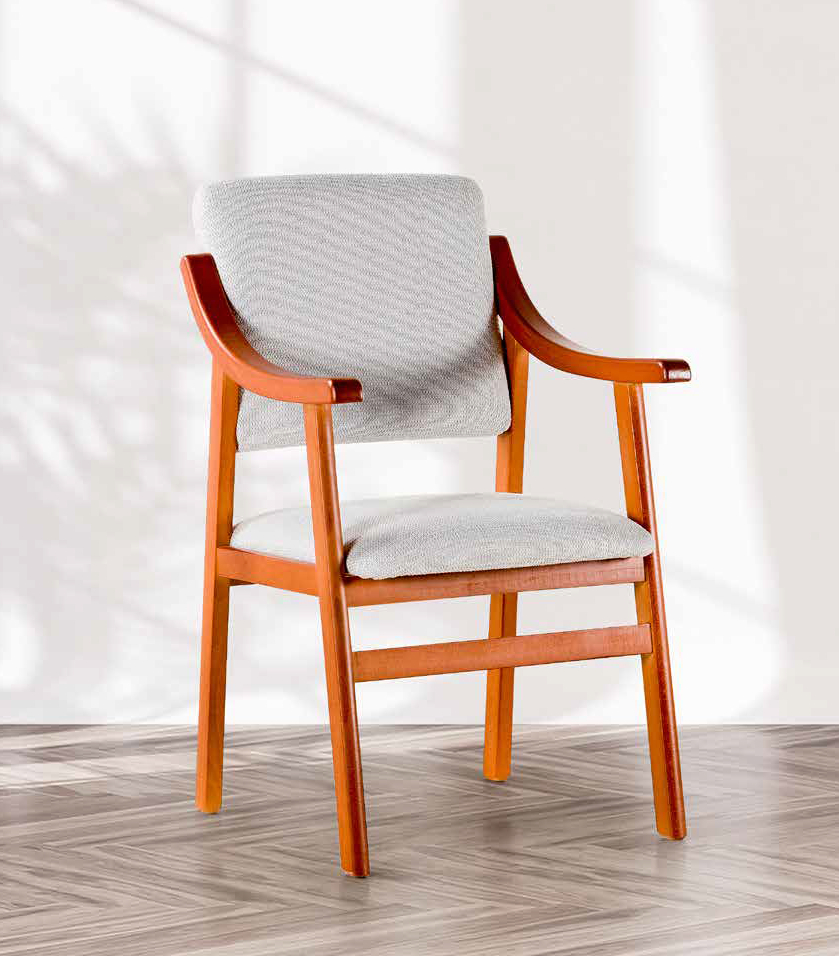 El sillón mod. 50 destaca por su diseño elegante y funcional, con una estructura de madera que aporta calidez al ambiente. Sus líneas curvas en los reposabrazos y el respaldo le otorgan un aspecto moderno y cómodo. El asiento y el respaldo están tapizados en un tejido gris claro, proporcionando confort y suavidad al tacto. Este modelo es ideal para espacios contemporáneos, oficinas o salones, gracias a su combinación de materiales resistentes y estética refinada. La robustez de la madera asegura estabilidad, mientras que las proporciones permiten utilizarla para largas sesiones de trabajo o reuniones familiares.