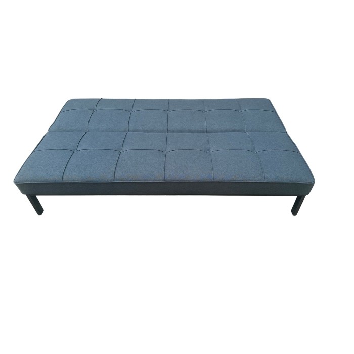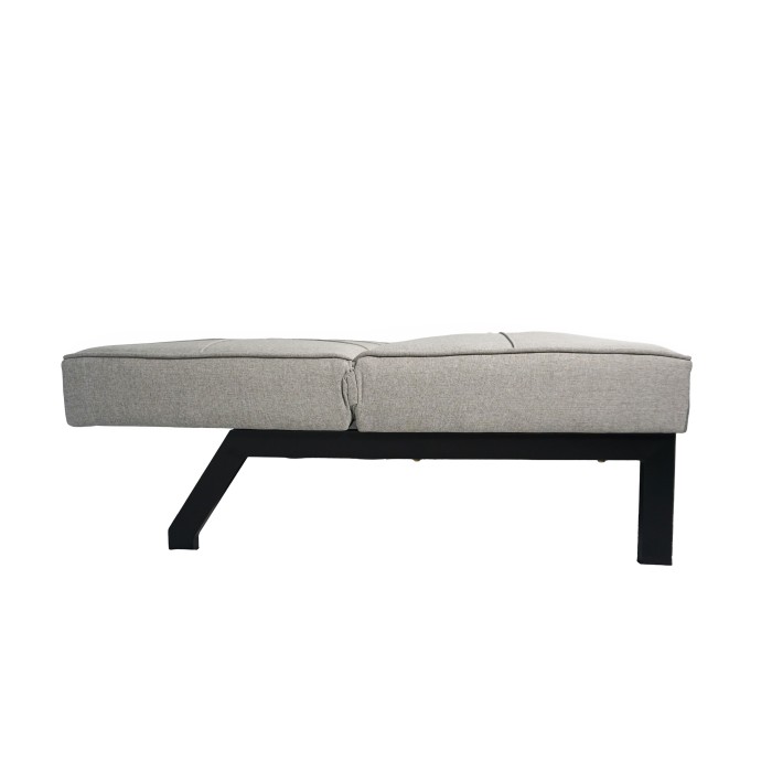 Sofá cama de estilo moderno con líneas rectas y diseño compacto, ideal para salones, estudios o habitaciones de invitados. Su respaldo y asiento acolchados ofrecen un confort firme y uniforme, perfecto tanto para sentarse como para dormir ocasionalmente. La estructura metálica eleva el conjunto y aporta estabilidad, facilitando la limpieza del suelo y garantizando un uso práctico en el día a día. El sistema de apertura tipo clic-clac permite transformar el sofá en cama de forma rápida y sencilla, sin esfuerzo y en pocos segundos. Es una pieza versátil que encaja en ambientes contemporáneos y juveniles, optimizando el espacio disponible y aportando un aire actual al hogar.