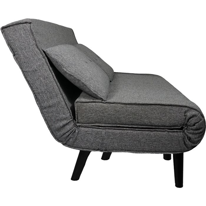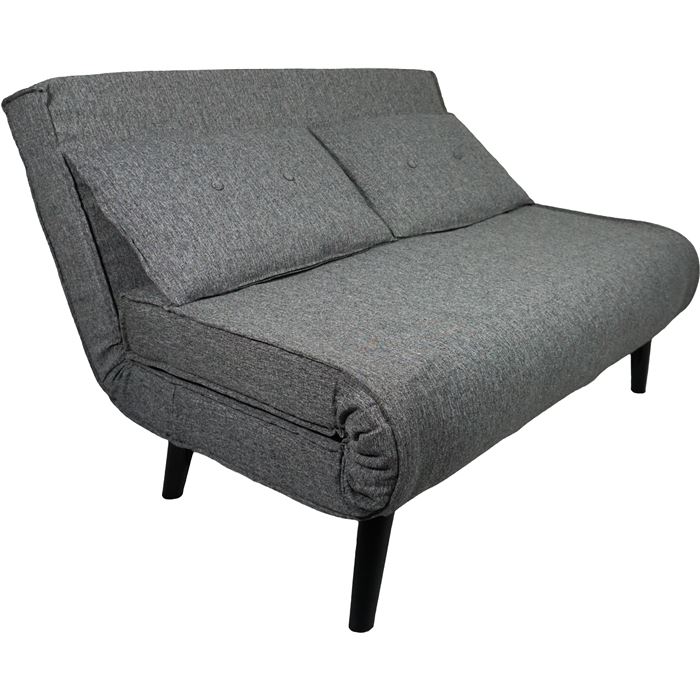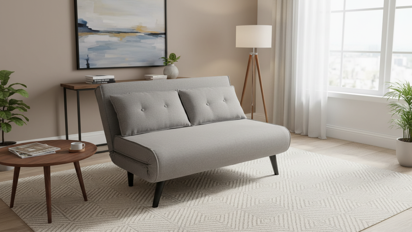 Este sofá cama presenta un diseño moderno y funcional, perfecto para salones, estudios o habitaciones de invitados. Su estructura compacta y el respaldo reclinable permiten pasar de sofá a cama en pocos segundos, ofreciendo un apoyo firme y cómodo tanto para sentarse como para dormir. Los cojines de respaldo están integrados en la línea del asiento, creando un estilo tipo futón muy actual, ideal para espacios jóvenes y contemporáneos. Las patas altas facilitan la limpieza del suelo y aportan ligereza visual, haciendo que el mueble no resulte pesado en estancias pequeñas.