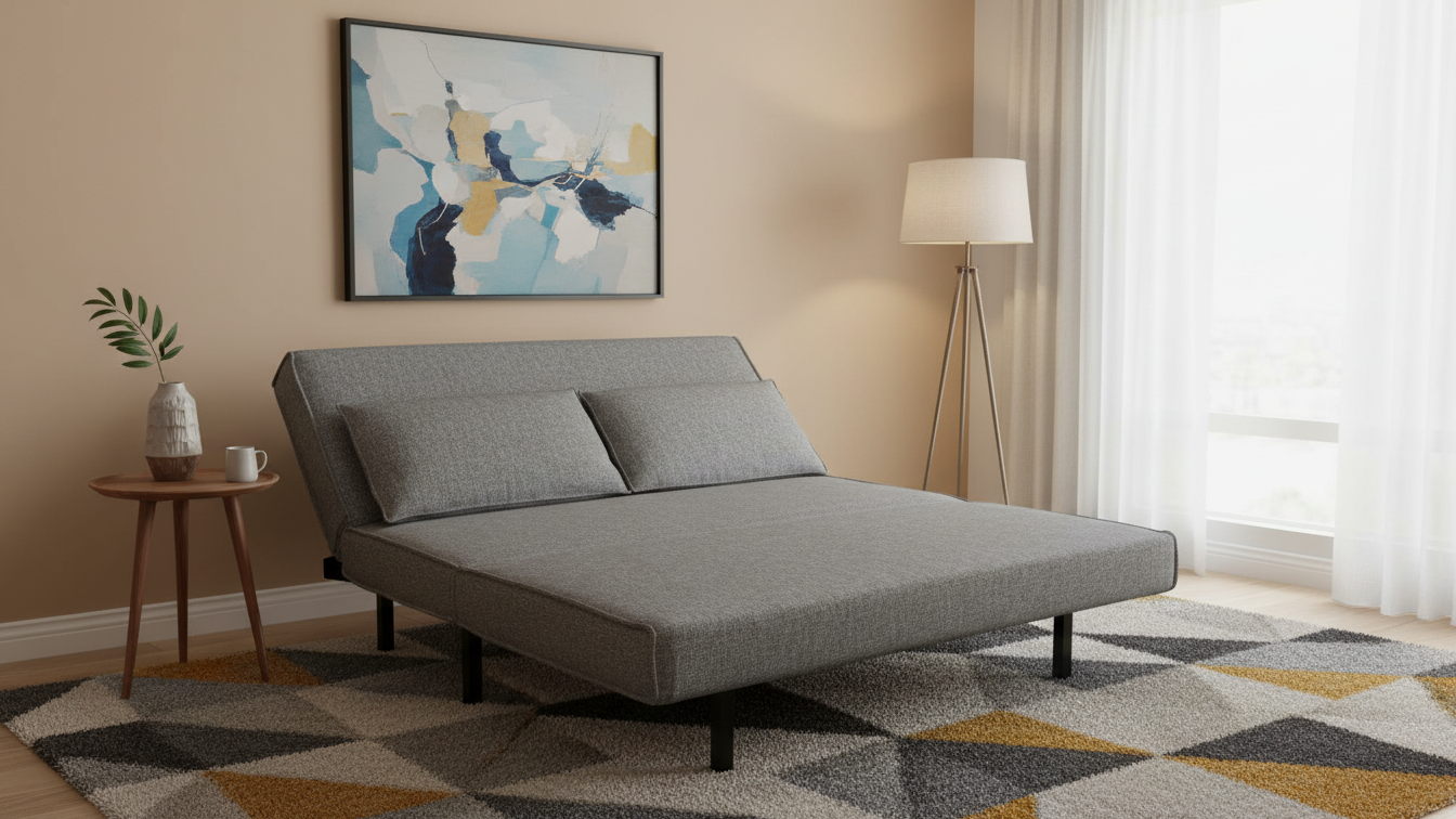 Ofrece un uso doble como sofá diario y cama auxiliar, con un mecanismo muy rápido de accionar y un diseño que encaja en diferentes estilos decorativos.