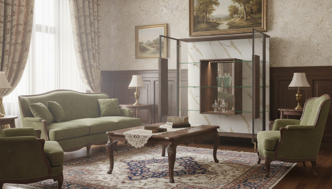 Límpiala con paño suave y jabón neutro en superficies de madera y cristal; evita productos abrasivos para preservar el mármol oro.