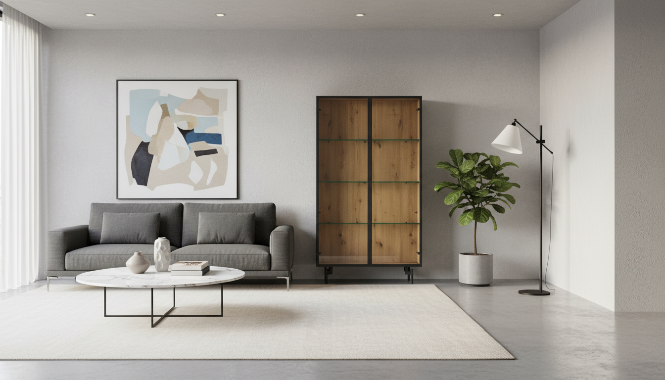 Esta vitrina destaca por su diseño minimalista y luminoso, con estructura de madera en roble artesano que aporta calidez natural, combinada con puertas, laterales y estantes de cristal templado para una exhibición clara de objetos decorativos o vajilla. Sus líneas refinadas y marco de aluminio en grafito, junto a patas metálicas finas, la hacen ideal para comedor, salón o despacho, sin restar amplitud al espacio. Esta pieza versátil de la colección New Royal de Kazzano ofrece calidad premium, fabricada en España con montaje incluido y opciones de personalización en acabados.