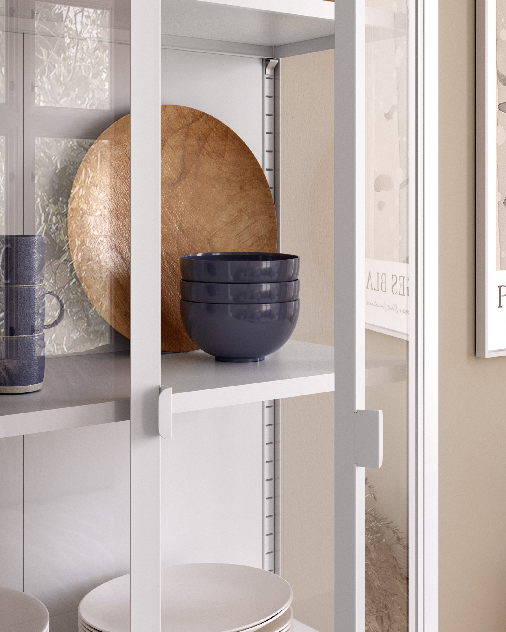 Las vitrinas de estructura metálica con baldas de vidrio templado resultan muy resistentes al uso diario y soportan bien el peso de libros, vajilla u objetos decorativos. Además, el vidrio templado es varias veces más resistente que el vidrio normal y, en caso de rotura, se fragmenta en trozos pequeños que reducen el riesgo de lesiones.