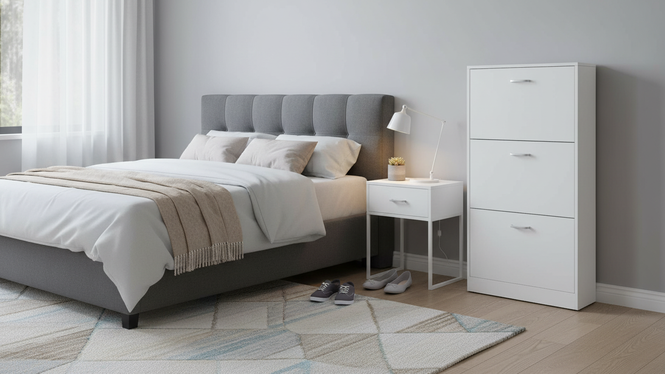 Ofrece gran capacidad para varios pares ocupando muy poco espacio gracias a su diseño alto y estrecho. Las puertas abatibles facilitan el acceso y ayudan a mantener el calzado ordenado y oculto.