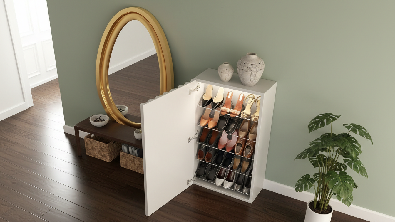 Ahorra espacio en zonas estrechas, organiza eficientemente hasta 15 pares de zapatos y aporta un toque moderno a la decoración.