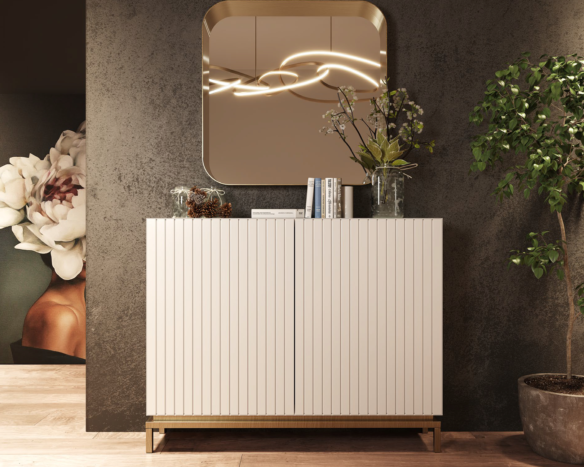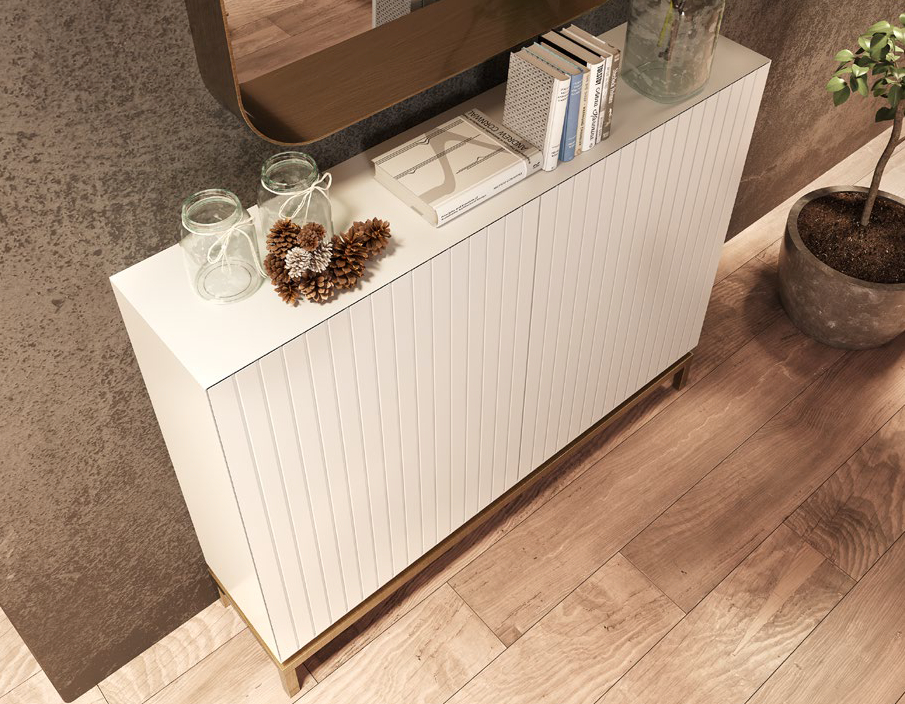 El zapatero Z32 Antike es un mueble moderno y elegante diseñado para organizar hasta 18 pares de zapatos de forma práctica y estética. Cuenta con dos puertas de acabado liso con estrías verticales que aportan un toque sofisticado y minimalista, ideal para entradas o pasillos. Su estructura elevada sobre patas metálicas proporciona estabilidad y facilita la limpieza debajo, mientras los estantes interiores permiten acomodar calzado de distintos tamaños de manera ordenada. El diseño combina funcionalidad con un estilo contemporáneo, ocultando el contenido para mantener un aspecto limpio y ordenado en el hogar. Perfecto para hogares con espacio limitado, ofrece versatilidad para botas, zapatillas o zapatos formales.