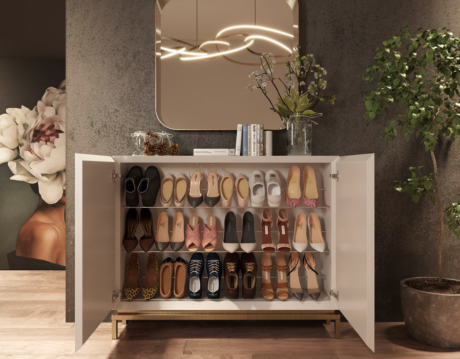 Organiza hasta 18 pares de zapatos, ahorra espacio en entradas y pasillos, y mantiene el calzado protegido del polvo con sus puertas cerradas.
