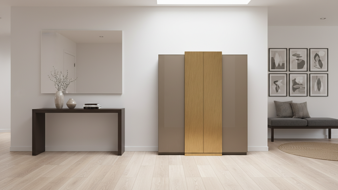 La combinación de tablero resistente, herrajes metálicos y trasera rígida proporciona una estructura robusta para un uso frecuente en la entrada o dormitorio.