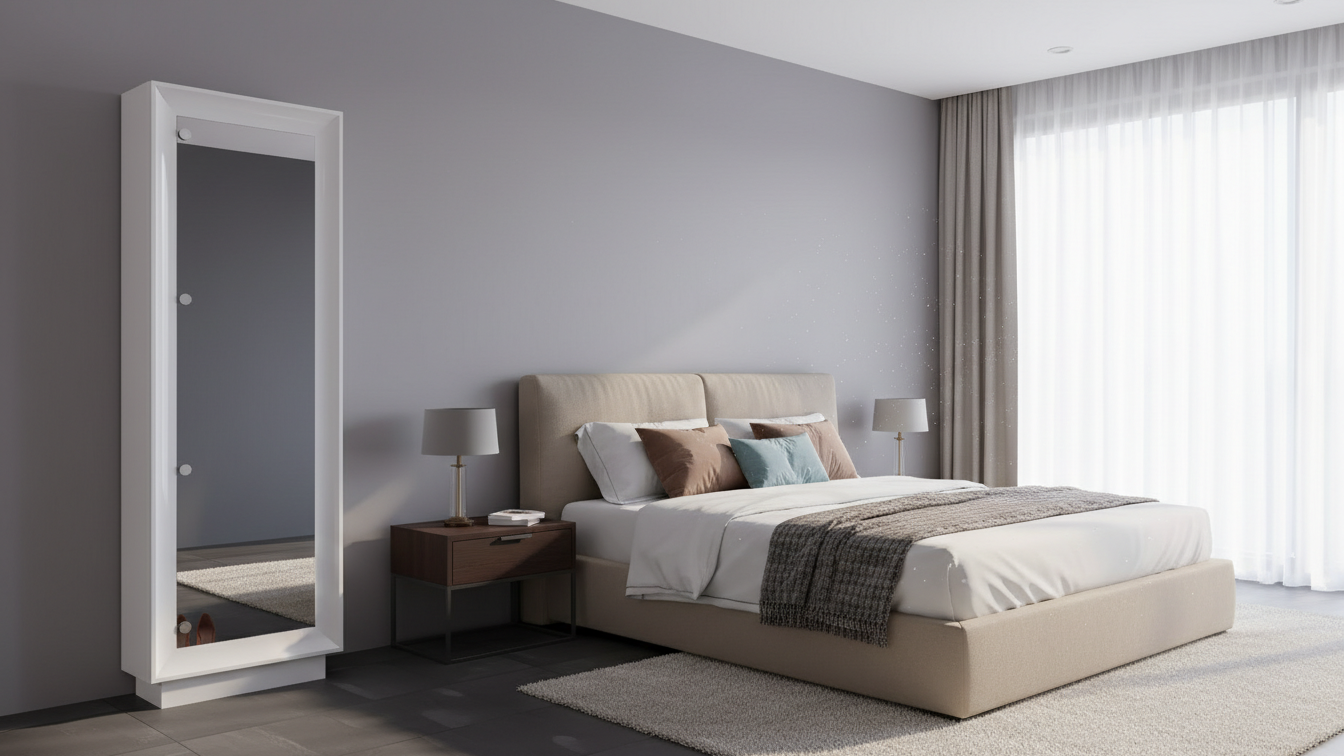 • Fabricado en tablero de melamina o DM lacado para mayor resistencia y durabilidad. • Puerta con bisagras metálicas y cierre magnético para un uso suave y seguro. • Espejo integrado de alta calidad que proporciona visibilidad completa. • Estantes inclinados o ajustables para adaptarse a diferentes tipos de calzado. • Estructura reforzada con varillas o soportes tubulares internos. • Tiradores metálicos con acabado cromado para un toque elegante. • Base estable con tacos antideslizantes.